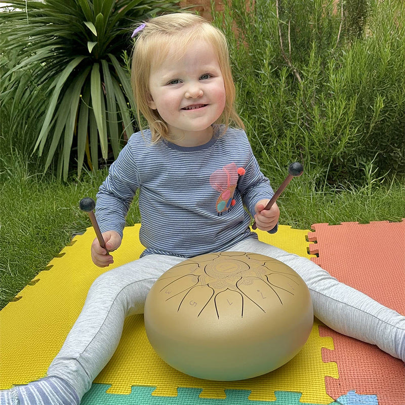Este tongue drum mandala permite tocar rapidamente uma bela música. É muito intuitivo.